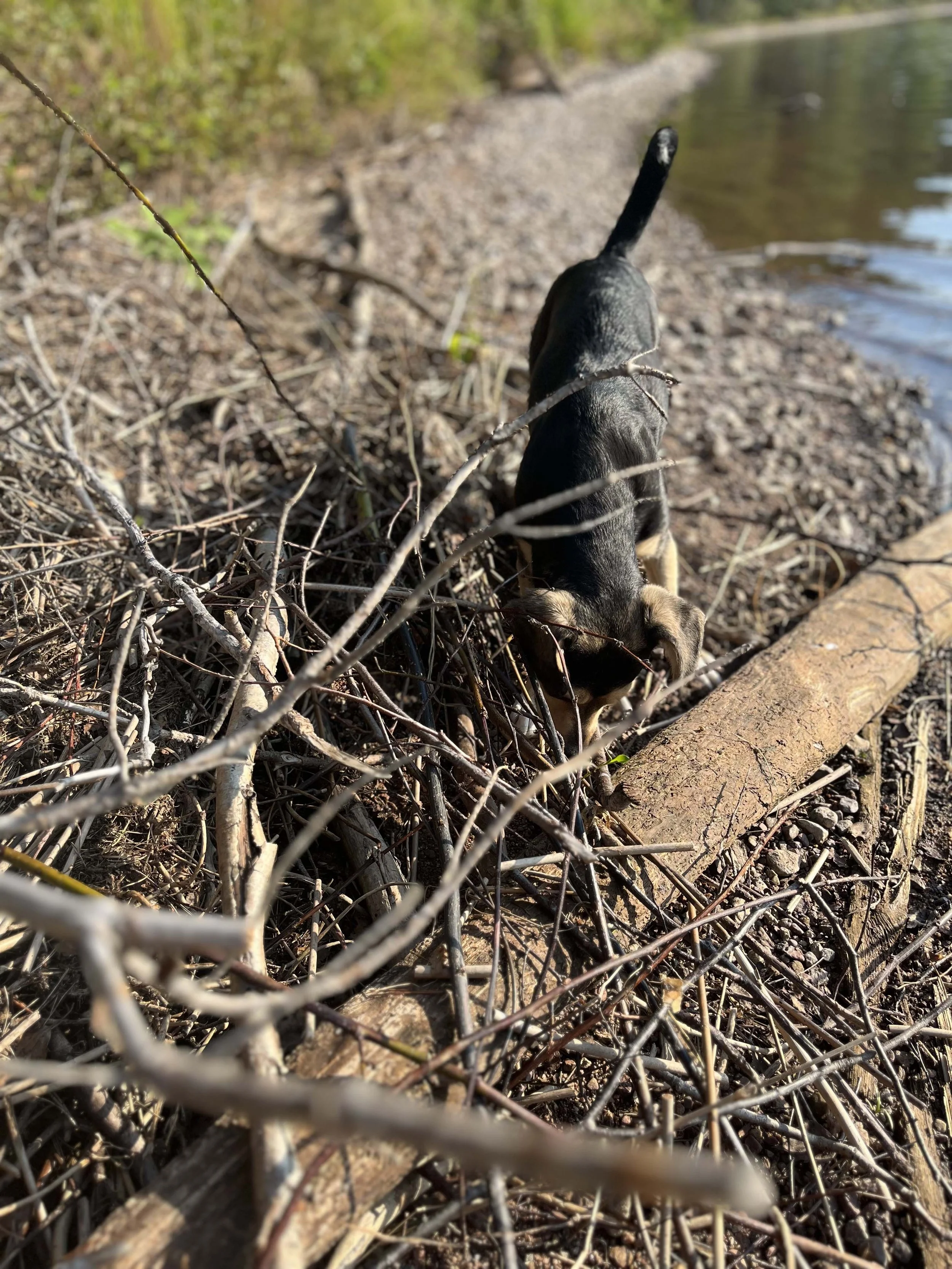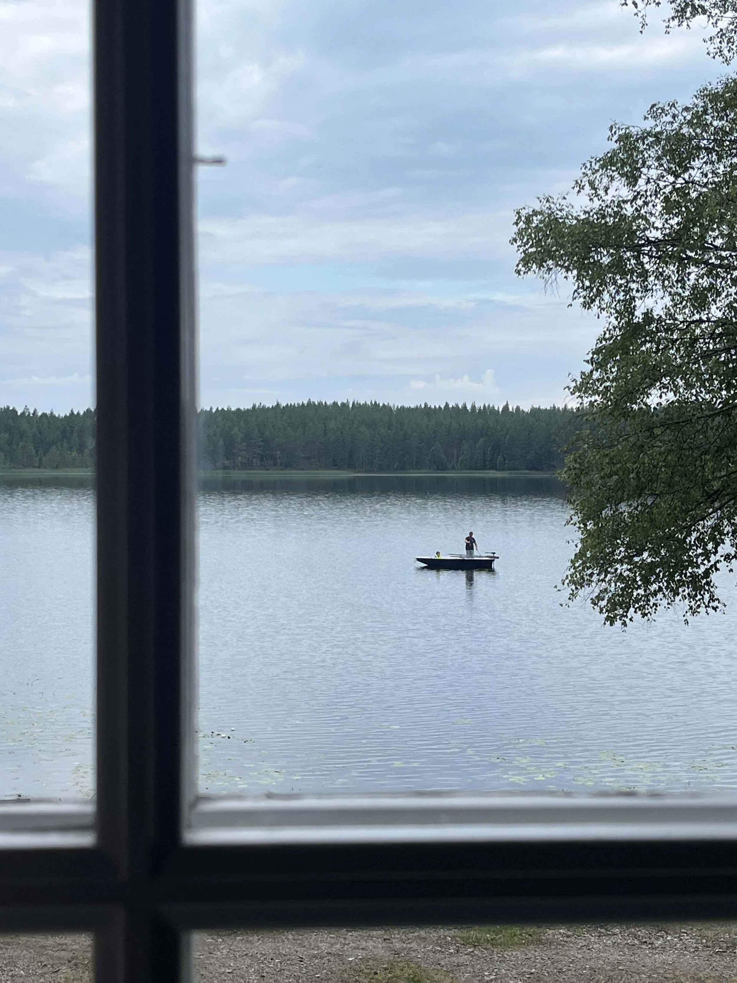 Without TV or city noise, life here feels anything but still. The water is clear, yet I hesitate to let my feet touch the soft lake bottom. I swim quickly past the arms of the water lilies that seem to want to grab me. Smilla licks the stones, as if they taste of something new. Birds dart past, dragonflies hang in the air. Something splashes. Maybe fish. Maybe something else. The left side of my body is sunburnt.